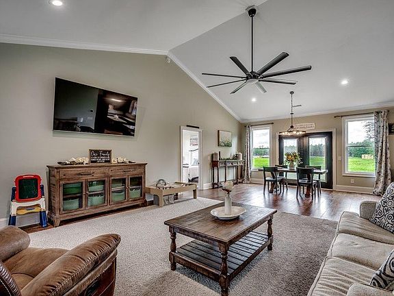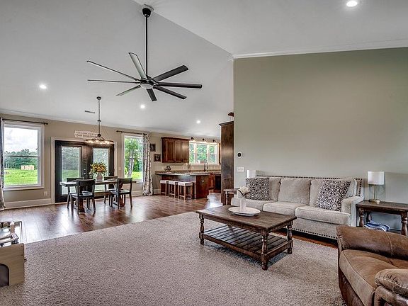 Absolutely a must see home and property! A wooded winding driveway leads you up the hill to your gorgeous new home on 2.88 acres with a grapevine, peach tree and pear tree. The beautiful front steps have curved brick columns that lead to a 60'X8' front porch. You will be impressed with the 8' front door that opens up to all the beautiful moldings and casings throughout the home. Granite countertops throughout the home. Kitchen features a spacious island and peninsula. The master bath has a large walk in porcelain shower with double heads. You will be impressed with the custom made, soft close cabinets. A one of a kind extra large laundry room that doubles as a mudroom with a show stopping built in hall tree and sink. It is amazing! Pictures do not show you how you will feel when you walk into this home. You must come and see for yourself.