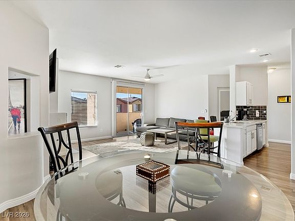 Tucked inside a gated Spring Valley community, this updated 2-bedroom, 2-bath condo offers 1,405 SF of comfortable, low-maintenance living. The open layout features wood-look flooring, neutral tones, and a cozy fireplace. The kitchen includes granite countertops, stainless steel appliances, a pantry, and a breakfast bar for casual dining. Bedrooms are thoughtfully separated for privacy, with a spacious primary suite featuring a walk-in closet and ensuite bath. Enjoy a private covered balcony, in-unit laundry, and covered assigned parking. Community amenities include a pool, spa, clubhouse, and fitness room. Conveniently located near shopping, dining, schools, and just minutes from the Las Vegas Strip, this home is ideal for anyone seeking a central lifestyle at an accessible price point.