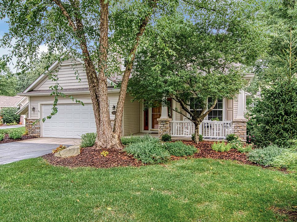 A lovely stand alone condo located in The Villas of Bailey's Grove. This unit has been well loved & maintained. Spacious open floor plan focused on main floor living. Large windows that allow for abundant natural lighting. Large kitchen with ample cabinet & counter space. Formal & casual dining areas, living room with fireplace, office & four-season porch. Primary bedroom suite with oversized bath - separate shower & jetted tub plus walk-in closet. Finished walkout lower level with large family room, wetbar, 2 bedrooms and full bath. Workshop & plenty of storage. 2-1/2 stall attached garage. New roof & furnace. Security system, back deck & patio & charming front porch. Lush landscaping creates a private retreat while enjoying the conveniences of this wonderful southeast area location.