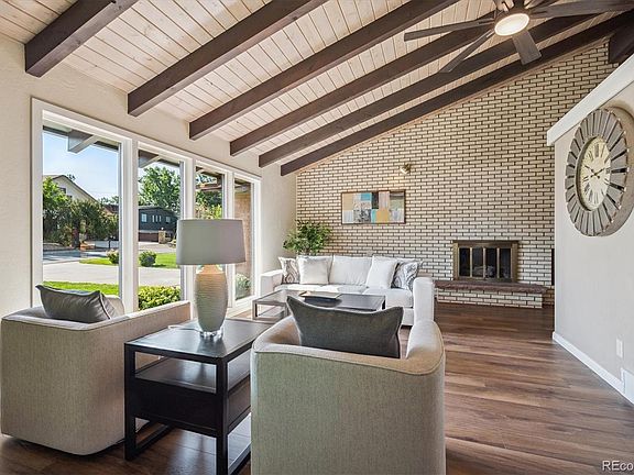 Beautifully updated mid-century ranch on a .33-acre lot in Applewood! As you walk through the front door your eyes are drawn to the vaulted tongue & groove wood beam ceilings and floor-to-ceiling brick surrounded gas fireplace with a vintage light fixture to emphasize a gorgeous piece of art! The living room has picture windows overlooking the lush front yard. The updated kitchen features white cabinetry with under-cabinet lighting, quartz counters, herringbone tile backsplash, stainless-steel appliances, and a pantry. The dining room is just off the kitchen with access to the covered back patio making entertaining a breeze! Clerestory windows above the kitchen and dining room allow natural light to pour in. The primary bedroom suite has a walk-in closet and an updated 3/4 bath with walk-in shower. Rounding out the main floor is an additional bedroom, office, vintage aqua & tan full bath with dual sinks, sunroom, workshop, and space to add a main floor laundry. The finished garden level basement has been updated to include a family room, 2 nice size bedrooms, an updated 3/4 bath, the laundry room, and under stair storage. Other updates include LVP flooring, carpeting, interior & exterior paint, and light fixtures throughout. A/C. The backyard is the perfect place to relax on the covered patio that features vintage light fixtures and epoxy flooring. Sprinkler system for easy lawn watering. 482 sqft 2 car garage. Large 14,244 sqft lot is zoned R-2 allowing for possible expansion. Experience all that Applewood has to offer! Shop & dine in Gold’s Marketplace, Applewood Village, Colorado Mills, and Denver West. Enjoy Applewood Golf Course, the Club at Rolling Hills, Wheat Ridge Rec Center, Crown Hill Park, or one of the many other parks in Applewood and Wheat Ridge. Walk to newly built Prospect Valley Elementary. Ever-growing Clear Creek Crossing is home to the new Lutheran Hospital, Lifetime Fitness, and a future food hall & biergarten. Convenient highway access.