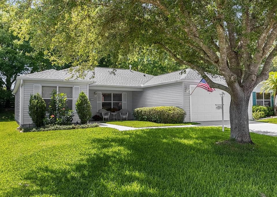 BOND PAID! BACKS TO 4 BOARD FENCE! PRIVACY! This 3 bedroom, 2 bathroom ranch home is conveying turnkey so all you need to start enjoying The Villages lifestyle is a toothbrush. The kitchen is a showstopper and features granite countertops, painted white cabinetry, tiled backsplash, and stainless steel appliances including a gas range. Large ceramic tile is located in all of the wet areas. The home features a split floor plan with the master bedroom on one side and both guest bedrooms on the other side. Volume ceilings make the home feel open and airy. You will love spending time on your glass enclosed lanai as you take the serene sounds of nature and enjoy an abundance of trees. The HVAC was replaced in 2018, roof in 2022, and hot water heater in 2023. The home exudes PRIDE IN OWNERSHIP! Other important features include 2 inch faux wood blinds, gutters and downspouts, epoxy painted driveway and walkway, glass storm door in the front, mature landscaping, and pull down attic stairs with floored attic. This is your chance to own a little slice of paradise!