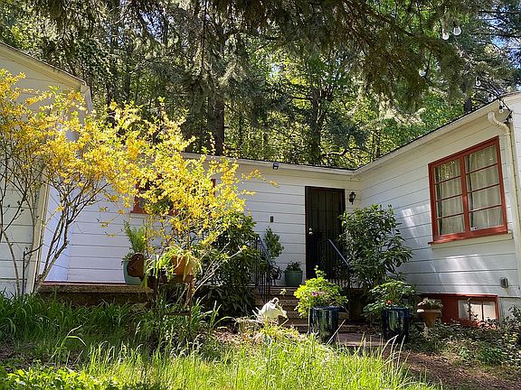 Original mid-century modern 1952 home with 2.5 acres of irrigated land accented with mature heirloom apple trees. Three bedrooms, full dining room, spacious living-room with expansive picture window overlooking landscaped front yard, and a bright kitchen with breakfast nook. Two full bathrooms with original 1952 Crane hardware. Beautiful original solid wood floors, carefully maintained. The front has the original apple packing shed, 50’ x 17’ with clear wood fir floor and opening doors which acts as our Farmstand in the summer. Has its own electrical riser and could be made into a separate guesthouse! Raised English garden with rose arches and mini kiwis. All of the landscaping we have added is edible, which is great as you can preserve food and store it in the root cellar. The root cellar is connected to the pantry by dumb waiter. All of the early 1950s architectural touches are intact! The front is fully fenced as well.