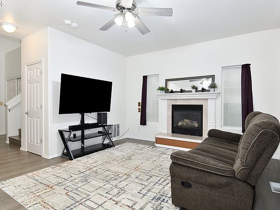 - Features: Fireplace, Sliding Doors, High Ceilings, Laminate Flooring