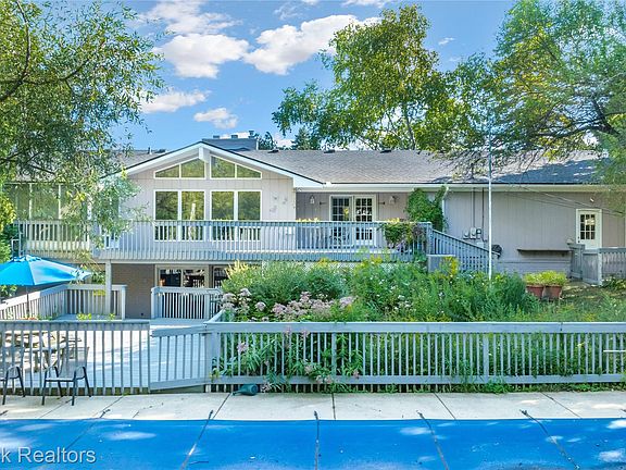 Welcome home to this beautiful 5 bedroom, 2.1 full bath walkout ranch with inground heated pool in Farmington Hills! This nearly 1 acre property has a fenced yard, 3 amazing decks with many convenient spots for entertaining guests! The main floor features beautiful hardwood floors, a huge living room with vaulted ceiling and large windows overlooking the stunning back yard and pool areas. The pool has been professionally maintained annually. The updated kitchen features cherry cabinets, custom counters, a built-in fridge, ample prep space and an eat-in area with 2 large butler pantries leading to the dining room. Excellent location in the heart of Farmington HIlls. Fall in love with the fully finished walkout basement that includes a game room with a second fire place, great room and even a sauna/shower room with enough space to create a 3rd full bath. This home blends luxury and functionality, It is ready for its next owner with massive potential at a price you can afford!