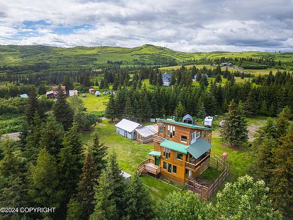 Looking for your mini-Alaskan homestead? This is it! Nestled amidst the breathtaking landscapes of East Homer, this home and property offers a unique blend of rustic charm and modern comfort. A spacious, well-maintained home with stunning glacier and mountain views and direct access to CIRI land, ensuring a private and serene setting.Spanning over four private acres, this property is idealfor a farm or homestead, complete with chickens and goats that contribute to its charming, self-sufficient lifestyle. Imagine waking up to the peaceful sounds of nature, enjoying coffee on your deck while watching wildlife roam freely. The interior boasts high ceilings, large windows that flood the home with natural light and incredible Kenai Mountain views. Located directly next to thousands of acres of CIRI and State DNR land, you will enjoy the convenience of direct access to back country recreating. Close to Caribou Lake, the Caribou Hills, fantastic skiing and so much more. The property also comes with a Shelter Logic structure, chicken coop, workshop & barn. Plus, the goats and chickens can stay depending on buyer preference. This home also qualifies for the AHFC rural lending program!