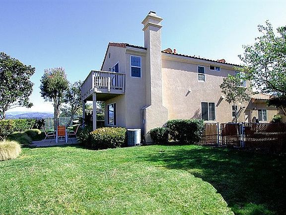 Enjoy panoramic views of snow capped mountains to the east, and the Pacific ocean to the west! This former model home with 3 bedrooms and 2 ½ baths, on a double cul-de-sac, has a large pie-shaped lot with plenty of room for outdoor playing and entertaining. There are loads of upgrades including plantation shutters, travertine and wood flooring, lead glass windows and surround sound with built-in speakers. The gourmet kitchen has fabulous travertine floors and custom drapes. It has a breakfast area with bar stool seating and loads of storage cupboards. The family room has a cozy fireplace and built in entertainment unit. The downstairs parlor, with stunning wood floors and plantation shutters, is a multipurpose room that could be used as a dining room, living room, reading room, office, kids study - whatever works best for your lifestyle. Upstairs the large master suite has a sliding door to the forever-view balcony. There are 'his and hers' closets with upgraded mirrored doors and a large bathroom with beautiful travertine flooring and an oversized, separate bath and shower. This fabulous home is walking distance to award winning schools, the Calavera Hills Lake and Nature Preserve, as well as the Calavera Hills Community Center. You are close to freeways and all amenities, including restaurants, shopping and the beach. This home has it all! Neighborhood Description Mediterranean Charm in Calavera Hills This immaculate former model home boasts one of the best Ocean Views in Calavera Hills. This home is nestled at the top of a peaceful cul-de-sac on a large view lot with 3 bedrooms and 2.5 baths and 1957 sq. ft of living space. This home has luxurious upgrades, designer décor, custom built-ins, attractive tile and carpet in neutral colors and plantation shutters throughout the home. The backyard is perfect for entertaining with a patio, large grassy area for children to play, a portable Spa to relax in. It’s an easy walk to award winning Calavera Hills Elementary and Middle Schools & the Calavera Nature Preserve. Plus you are close to the 5 and 78 Freeways, shopping and amenities.