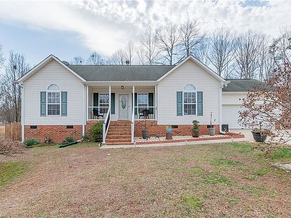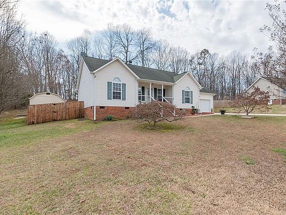 No HOA! Today is your lucky day! This meticulously maintained 3 Bedroom, 2 Full Bath Home on 1.4 Acres, with a Rocking Chair Front Porch, Deck, Fenced Backyard, Two Storage Buildings, Paved Driveway & Double Garage in a wonderful area is newly available & calling your name! This home has been loved & well cared for. Beautiful galley kitchen with granite countertops. Vaulted Ceiling in Living Room with a cozy Gas Log Fireplace. Split Bedroom Floor Plan. Primary Bedroom has a generous walk-in closet. Easy to maintain one level living space with hard surface flooring throughout, no carpet anywhere. Conveniently located to great schools, shopping, medical facilities, and 5 minutes from Interstate 85. Courtland Manor is located in a growing & thriving area. Within a short driving distance of other great towns such as High Point, Greensboro, Winston-Salem & Asheboro. Come see what there is here to enjoy!