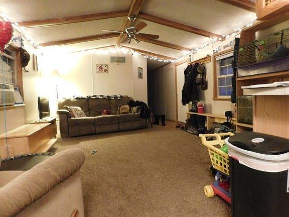 The view can't be beat! Watch gorgeous sunrises and look out at the spectacular fall colors while sitting on the large covered deck. This well maintained single wide mobile home sits on just under 2 acres and provides country living yet is close to town. The home is on a full foundation with a poured wall basement and has recently been foam insulated and wired for electric. There's a 2 stall barn with electric and room for a workshop. Call today!