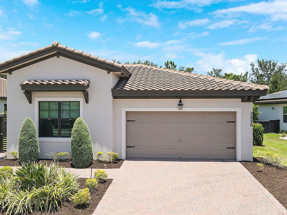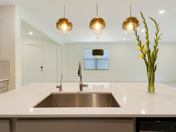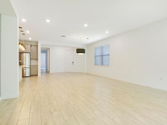 A stunning residence nestled in the heart of the desirable Royal Palm Beach community. This elegant home combines modern comfort with timeless appeal, offering an exceptional living experience for you and your family. Featuring 3 spacious bedrooms and 2 full bathrooms with high-end fixtures and finishes, this home provides generous living space of approximately 2,800 sqft. Inside, the open floor plan creates bright and airy living spaces with large impact windows and abundant natural light. The gourmet kitchen is a chef's dream, featuring stainless steel appliances, quartz countertops, custom cabinetry, and a large island for meal prep and casual dining. The luxurious main suite includes a walk-in closet and an en-suite bathroom boasting dual vanities, a soaking tub, and a separate glass-enclosed shower. Beautiful wood like tile floors run throughout the main living areas, with plush carpeting in the bedrooms, and high ceilings enhance the sense of space and elegance.
