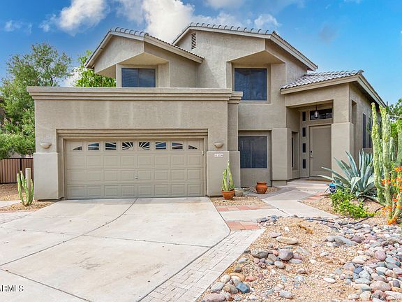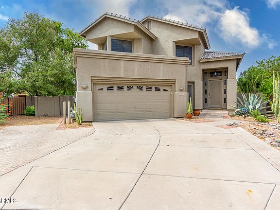 New Owner Will Receive $13,000 in Incentives, Speak With Your Agent to Find Out What They Are! Amazing property on a peaceful cul-de-sac offers excellent curb appeal, desert landscape, & 2 car garage w/extended driveway. Interior boasts a spacious living room w/soaring ceilings, tile flooring, a formal dining w/stylish lighting, & a bright family area w/access to the back patio. Large kitchen features a plethora of wood cabinets, custom backsplash, SS appliances, recessed lighting, solid surface counters, & butcher block counter on the island w/breakfast bar. Generous size main suite enjoys bountiful natural light from the bay window, an immaculate ensuite w/dual sinks, & a sizable walk-in closet. HUGE backyard comes w/a covered patio, pavers, a fire pit & more. You must see it! Act now!