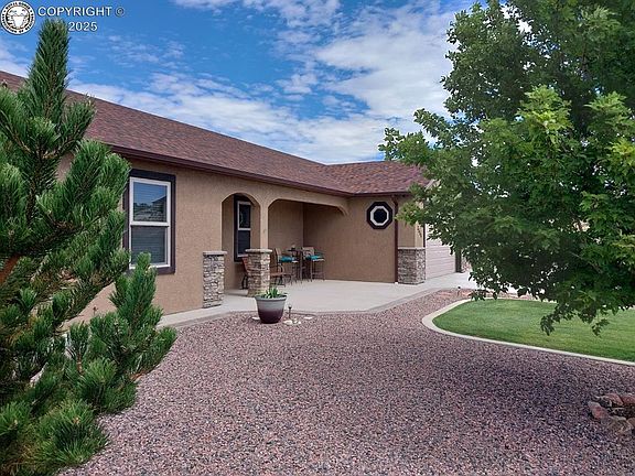 Well maintained one-owner home in the Four Mile Ranch golf course community. This home offers exceptional features including custom kitchen cabinets with soft close drawers and Corian countertops, breakfast bar and dining area. The flooring throughout is 3/4" tongue and groove hickory hardwood and the home also includes sound proof interior walls, gas log fireplace, vaulted ceiling and lots of windows to let light in. The primary bath features a walk-in closet and a large luxury walk-in shower and porcelain tilework. The attached 940 sf 3 car garage is finished including trim, textured and painted and is oversized for additional space for storage or a work area and a bonus 1/2 bath! Enjoy the covered front and back porches, stamped sidewalk around the home for easy access to front and back of this fully landscaped large lot. Easy exterior maintenance with stucco siding and automatic timed sprinklers for the grass and trees. Nice fenced backyard with aluminum close mesh picket fence and a great setting for entertaining with additional off-street parking. Easy access to furnace and tankless water heater in garage. New roof in 2021. Come take a look to see how this home checks all the boxes!