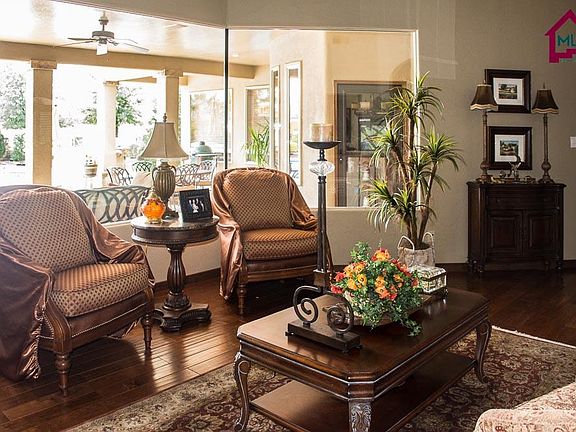 Elegance & Comfort is Waiting for You Here at Sonoma Ranch. This Southwestern Style Home is Approx 3492 Sq.Ft., 3 Bedrooms + Office, 3.5 Baths, 2 Eating & Living Areas, 2 Master Suites, Kitchen is Chef's Fantasy with Jen-air Appliances, Custom Built Cabinets & Doors, Storage Galore, Fireplace, Radiant Heat under the Hardwood Floors in the Dinning Room, Office & Entry Areas. The Master offers Walk-In Closet, Jetted Tub, Shower/Steamer, 2 dressing areas, The Home is heated & Cooled by 2 Heating and Cooling Systems. Outside offers Oversize 3 Car Garage, Outdoor Kitchen, In Ground Pool, Covered Patio For Great Entertaining & all Accented by Full Views of the Organ Mountains and Sonoma Ranch Golf Course.