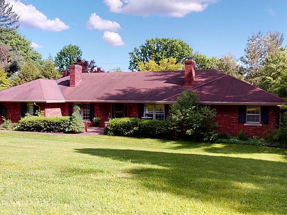 *All brick; *Sprawling ranch; * 3/4 Acre wooded lot; *Front entry/patio features standing fountain; *Walkout basement under portion of house & crawl space under the remainder; *3,031 finished square feet of house on 1st floor; *2 car side entry, tiled floor, oversized garage; *2 Wood burning fireplaces; *2 Patios out back; *Large finished recreational area in basement; *Bath in basement with concret block walled shower; *HVAC unit replaced in 2018; *Primary suite shower is built for two. *So much to see and many possibilities. *Schedule your viewing right away!