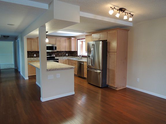 Newly updated kitchen with maple cabinets and an open concept with eating counter, newer flooring, 2 fireplaces, huge main floor laundry room, attached heated garage with shelving, steel siding, vinyl windows and a paver patio on almost an acre just outside of city limits, with city sewer and power. You won't find another home like this one.