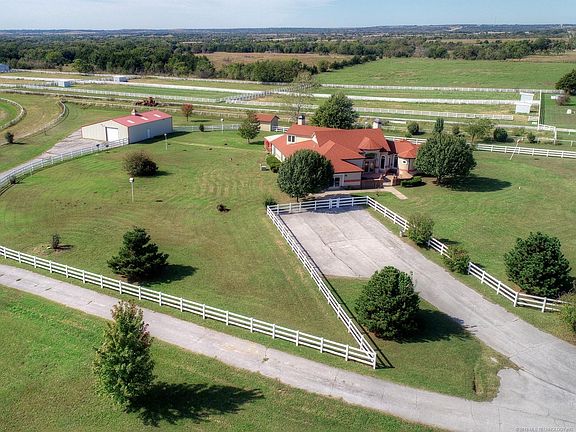 77 ACRE HORSE RANCH, RACE TRACK (5/8ths mile for training), 50x150 BARN w/ electric, tack room, feed area & office. Two H2O WELLS (waters the entire facility.) Nine -12x12 BLDGS, Four-12x24 BLDGS,Ten-HORSE SHEDS, HAY BARNS, Round PEN, Two PONDS, Completely FENCED with vinyl pipe. 3491 sq ft house lwith huge master suite & 2 add'l bed suites down, enclosed 2 car gar & 8x10 detached garage. TWO ADD'L HOMES on property, Located between Tulsa & Stillwater. HUGE Price drop ~ MUST SEE before it's gone!