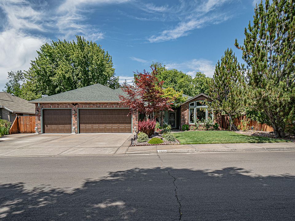 Expansive four-bedroom, two-bathroom residence located in the highly sought-after Larson Creek Estates! Step into a luminous, spacious living area featuring a soaring barrel vaulted ceiling, arched windows, and a cozy gas fireplace, seamlessly flowing into an elegant formal dining room. The sizable family room boasts freshly painted built-in cabinets and leads to a modern kitchen with upgraded appliances and convenient pull-out pantry cabinets. Enjoy a serene backyard retreat that offers privacy and borders Larson Creek with adjacent trails. Recent updates include HVAC, exterior paint, garage doors, water heater, fencing, and a large barn shed. Hot tub included. This single-story home with a three-car garage presents an excellent value proposition in the market.