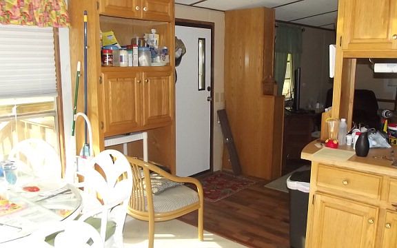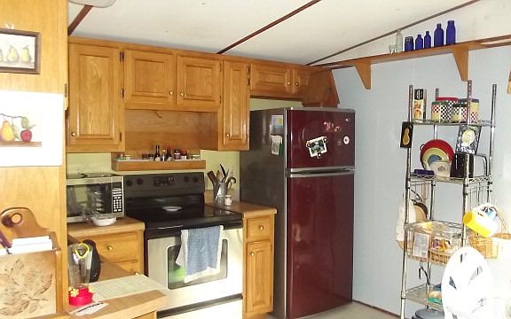 Loango single wide on beautiful land. 2 bedrooms/1 bath. Metal roof. Custom cabinets in kitchen. New Laminate. Covered front porch with lots of color. Enclosed back entry/mud room. Amish built screened in gazebo. 2 sheds. Workshop with power. Addt'l bldg. with propane powered generator. Fruit trees, level land. Perfect for down sizing or living off grid.