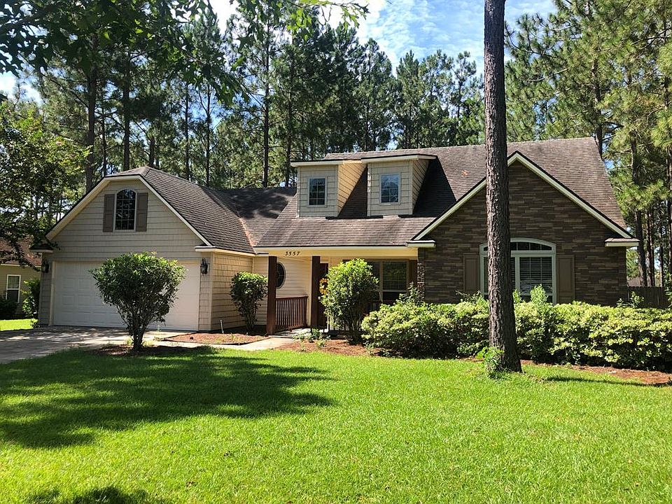 Located just a short drive from Moody Air Force Base and so convenient to town as well, this adorable stacked stone and vinyl sided home has 4 bedrooms and 2 full baths. This home has a cozy front porch and large open back porch overlooking an oversized fenced back yard. Inside is a split bedroom for plenty of privacy. The open kitchen presents a breakfast nook overlooking the back yard and the great room area is large enough to entertain friends and family. Master bath has his and her sinks with plenty of storage above and below both. Newly painted interior!