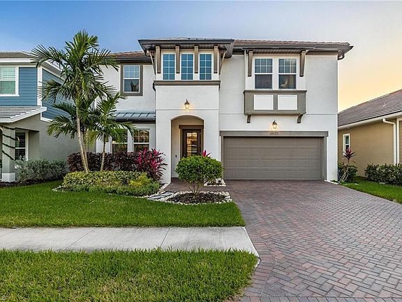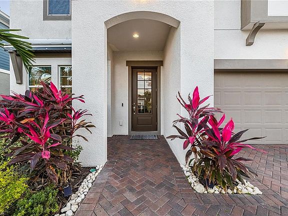 Here is the Commodore in the coveted gated community of Compass Landing in North Naples! This home is beautifully positioned with immaculate lakefront view and desired Southern exposure. This two-story, elite home brings you 4 bedrooms, 4 bathrooms, along with den/study and stunning open-concept kitchen. This gorgeous home features substantial upgrades with elevated ceilings, expansive master suite with oversized walk-in closet, premium tile flooring extending throughout first floor and cozy central loft connecting all 3 upstairs bedrooms. Additionally, this home possesses an oversized two-car garage, widened stone paver driveway and roof-mounted solar panels for added efficiency. Compass landing offers its residents countless amenities such as a clubhouse with available kitchen, fitness center, expansive playground for children, and outdoor vacation style pool with hot tub. This community is located in an excellent school district and sits within walking distance or a short drive to the best shopping, dining and entertainment/night-life Naples has to offer.
