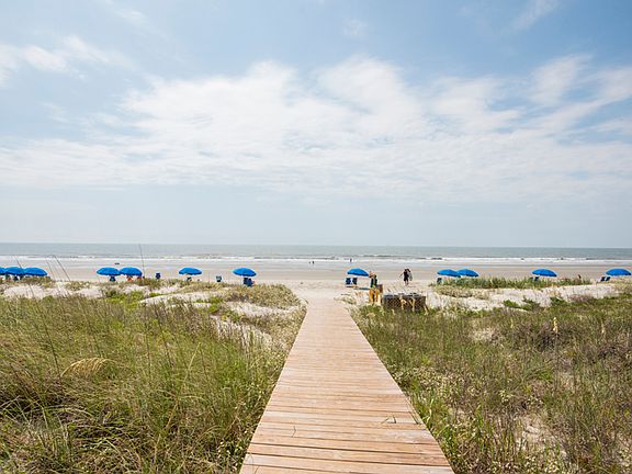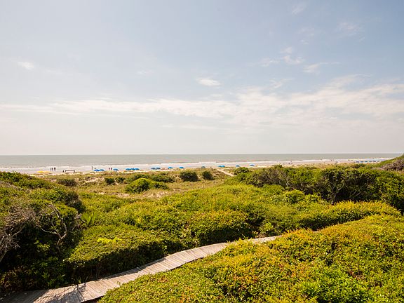 Just steps to Kiawah Island's 10-mile beach, this three-bedroom Seascape Villa enjoys stunning Atlantic views and is next door to the owner-exclusive Sandcastle which offers private pools, an outdoor bar and grille, and fitness amenities. Close to Kiawah's main gate, residents here enjoy convenient access to many Island amenities, Freshfields Village, and downtown Charleston. This open villa celebrates amazing Atlantic Ocean views with plenty of flexible space--both indoors and outdoors--to entertain family and friends, and enjoy Kiawah's beautiful scenery. The great room with vaulted beamed ceilings and fireplace combines the living and dining areas for a relaxed and welcoming feel and opens onto the screened porch and oceanfront deck. Bright and sunny, the fully equipped kitchen has an elevated granite-topped bar with seating, upgraded cabinets, granite counters, stainless steel appliances, bead board detailing, tile backsplash, ceramic flooring, and access to the screened porch overlooking the ocean. Just off the kitchen and great room, the formal dining area offers wonderful views and plenty of space for family and friends to gather. The master bedroom enjoys oversized picture windows with beautiful ocean views, vaulted beamed ceilings, and private master bathroom with upgraded cabinetry, granite double vanity, and large tile frameless shower. Two additional bedrooms each have a private bathroom. The charming screened porch and deck offer perfect spots to dine alfresco, delve into a good book, visit with friends, and enjoy the sights and sounds of the ocean. Ground floor access to the boardwalk puts you mere steps from Kiawah's breathtaking beach. Offered furnished, new walls, new tile flooring, new lighting, new washer and dryer (2014), new hot water heater (2013), new HVAC system (2012), and new kitchen appliances (2012).