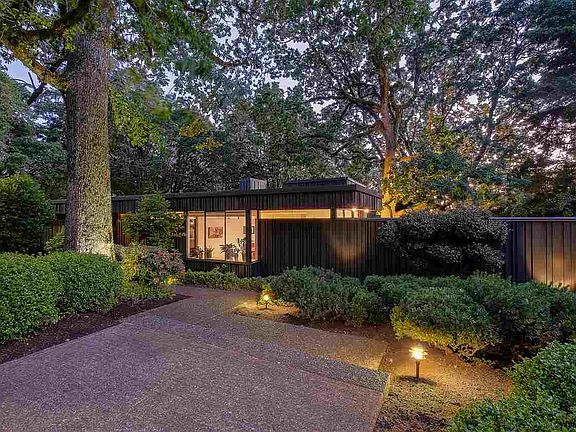 Mid-century Philip Settecase Masterpiece well-built in 1968 on large lot, in a quiet neighborhood, near park with tennis court & great schools. Expertly remodeled using best-quality cabinetry, travertine, & wool. Master suite with dressing room, roman shower, and private zen garden patio. All new white kitchen with SS pro-appliances, quartz, a wall of windows overlooking mature Wallace Huntington garden & 960 sq ft deck, open to large dining room & den. Four bedrooms, three bathrooms, & utility rm. Mid-level, and large family/playroom. Two Office Rooms.