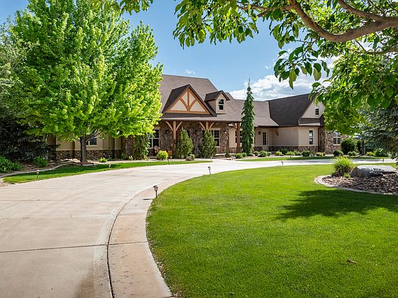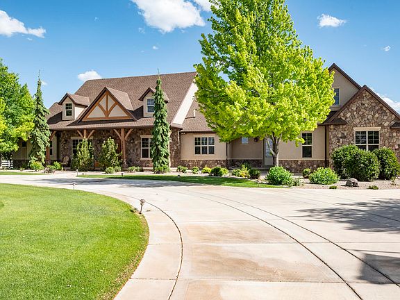 Welcome to your dream home! This magnificent estate, set on 4.34 pristine acres, is a rare gem zoned for horses & is meticulously landscaped, fenced and cross-fenced. Enjoy the lush pasture with convenient irrigation water, perfect for your equine friends. This 5 br. 4.5 bath home is thoughtfully designed to capture breathtaking views of Cedar Mountain from every angle. The main level features a luxurious master suite with a spa-like bathroom, including a jetted tub & a state-of-the-art programmable walk-in steam shower. The main level also boasts a formal dining room, a well-appointed office with built-in bookcases, and a versatile craft room. The kitchen is a chef's dream with a Sub-Zero built-in fridge, prep sink, granite countertops, and a walk-in butler's pantry. Admire the timeless details with exquisite woodwork throughout, with solid core doors, elegant wood trim, and beautiful engineered hardwood floors. The full walk-out basement offers an entire second home with a fully equipped kitchen, a spacious family room, four additional bedrooms, three more bathrooms, and a cozy fireplace. Perfect for entertaining, the outdoor kitchen & firepit provide an ideal setting for gatherings, while the professionally landscaped yard adds to the property's charm & beauty. The main home features an oversized three-car garage. Also, an impressive massive detached 64x64 heated RV garage and workshop with two 12-foot doors and one 16-foot door, complete with a half bathroom, offers ample space for all your vehicles, toys, and hobbies. HOA is only $42 per month and includes access to community parks, sand volleyball courts, pickleball courts, 2 playgrounds, basketball courts, baseball diamond, 2 pavilions, riding trails and more.