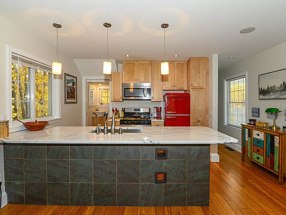 This charming property is a hidden gem! Nestled in a small association just outside of North Conway Village, this home boasts a private yard with a large farmers porch, perfect for enjoying the scenic vista. The living/dining/kitchen area is ideal for hosting small gatherings, with high ceilings, an efficient kitchen, and a warm gas fireplace. The glassed-in three-season room off the living space can easily be converted to additional living space, and leads to a private deck complete with a hot tub. Upstairs, the large sunny bedroom features a private bathroom, and the wood and tile floors throughout the house are of high quality. This home was built with comfort and efficiency in mind, providing a sunny and warm coziness that is hard to find. Current owner uses home as a VBRO with many 5 star reviews and $79,000 a year income. New paint inside and out as well as new furniture. Home is being sold furnished. Property is in the Highway Commercial Zone and is permitted for short term rentals. Don't miss out on the opportunity to make this your dream home!