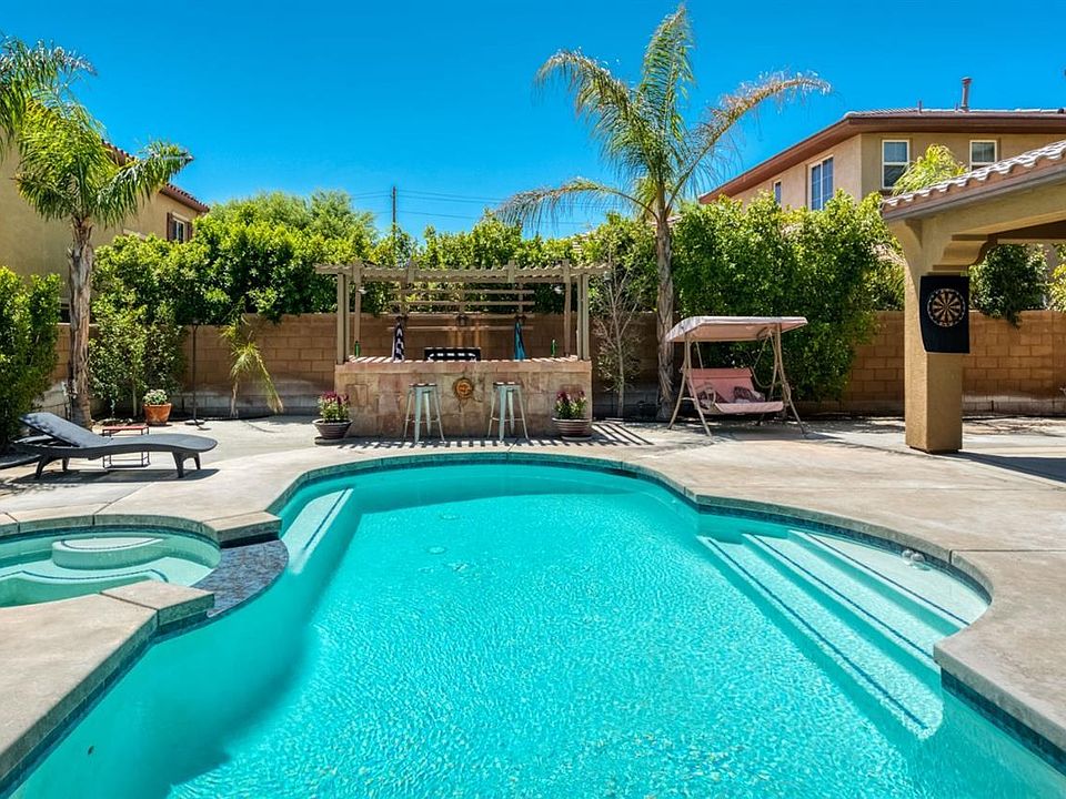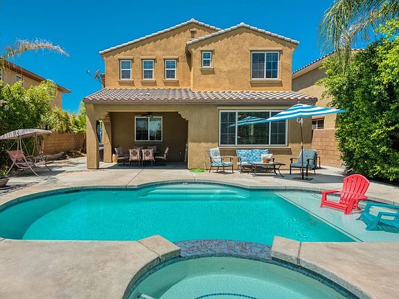 STOP RIGHT HERE!!! This gorgeous 2 story pool home which exudes 5 Bedrooms, 4 full Bathrooms, and a Half Bathroom is available and ready for its new owner. Located in the gorgeous newer gated community 'Dolce'. This community is high class and clean. Right down the road from all shopping, entertainment, and restaurants. Enjoy your private backyard with your own private in-ground pool and spa. The summers are hot and a pool is a must. Host get together's with your outdoor kitchen area and ample living space. Cook for your guests in the amazing chefs kitchen which comes equipped with all stainless steel appliances. With bedrooms and bathrooms on both levels, this home offers a split floor-plan option. Never feel like you've run out of space, there is plenty! This home has low HOA fees. Give me a call to view this gorgeous home. You wont be disappointed.