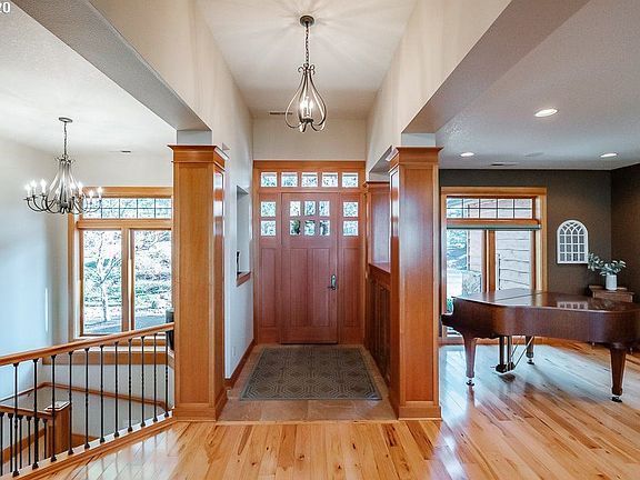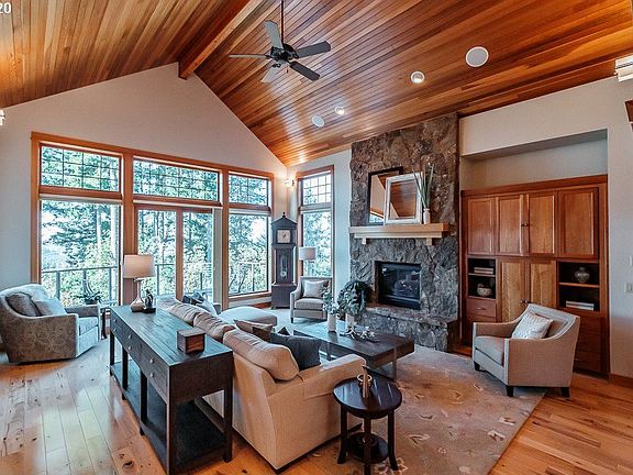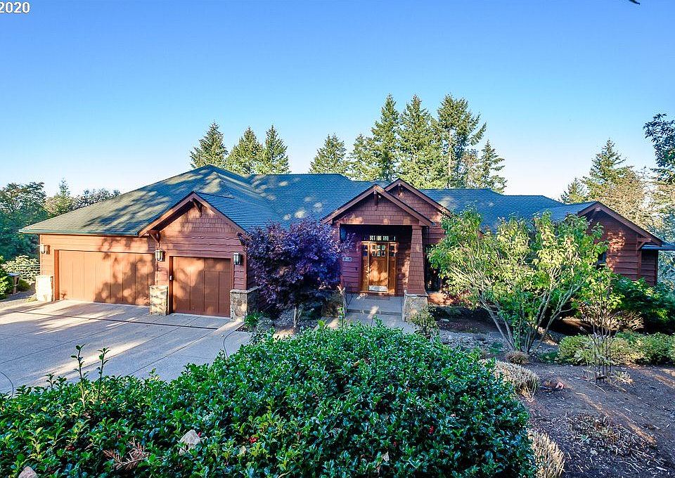 Perched above the treetops of South Salem sits this amazing custom home. Picturesque sunset views from the main level & enormous solid surface deck. Open living area w/ soaring vaults, stone fireplace, and finely-crafted woodwork throughout. Gourmet kitchen w/ Miele ovens, Wolf cooktop, & Sub-Zero refrigerator. Beautifully appointed master suite. Downstairs features a large family room, theatre room, craft room, and much more. Outside is a gardener's delight. Fruit trees/greenhouse/fenced garden