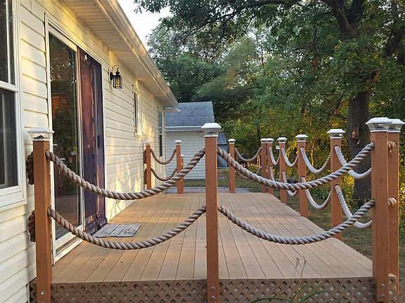 Mississippi Riverfront 2BR, 2BA pristine bungalow ranch built in 2005 includes dock! There is a lease with the Corps of Engineers on the stairs to the river, the dock, and the pump house. The owner has spared no expense to make the following updates in the past few years: All interior walls and ceilings have been freshly painted and crown molding installed. New storm doors, LED lights throughout, including garage; Installed patio; installed river rock around the house & garage; insulation in attic; bead board in kitchen; insulated all water line in the crawl space; sealed all duct work joints in crawl space; installed plastic lattice around the deck base; installed new stairs on the deck; replaced shingles on the shed; primed & painted the shed; installed new blinds/curtains in house and garage; replaced deck treads and handrails; installed gutter and downspout on downriver side of garage; planted Norway Spruce in the front yard; painted inside garage and installed base board; installed new deck; replaced pressure tank; installed rope & posts on deck. WOW!!! Check this out!! Just move in and start enjoying the river!