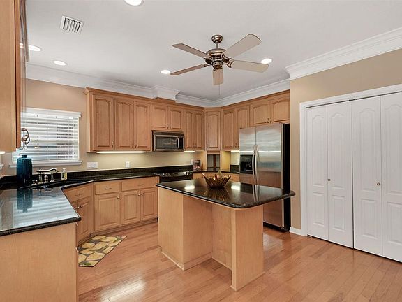 This super CLEAN home (in Pace school district) is move in ready with many of the popular upgrades that builders are currently using including hardwood flooring, quartz countertops, stainless appliances, huge screened in patio, built-ins in most rooms, large laundry. This OPEN CONCEPT home sits on a .3 acre lot with a large greenbelt behind the fence. Great room has a trey ceiling, gas fireplace and hickory floors. Kitchen has upgraded Stainless appliances (KitchenAid, LG and Kenmore Elite), 42" maple cabinets, quartz countertops with bullnose finish, under-mount Kohler double cast iron sink, under-counter lighting, large island/breakfast bar, pantry and a breadbox. Other upgrades: NEW carpet, security system, newer blinds, marble window sills throughout, crown molding, dimmer/rocker switches, chair rail molding, hickory hardwood floors (in living, dining, kitchen, hall and foyer), custom ceiling fans, brushed nickel hardware, Spanish Lace (knockdown) walls and ceiling finish, new programmable thermostat. 4th Bedroom is being used as a study with built-in file cabinets and shelving, internet on two walls and glass French doors. Huge master has trey ceiling and double crown. Master bath has two walk in closets (both with built-in dressers and shelving plus one shoe rack, jetted tub, double vanity, make-up area, 20x20 porcelain tile and a built-in for toiletries, plus water closet. Second bath has 13x13 tile and a make-up area. Garage has a pegboard and attached shelving. Custom designed tiled & screened-in patio has gas tap for grill, three ceiling fans, 50 gallon propane tank and a small pet door to backyard. Lawn has been professionally maintained since 2004 and includes plenty of flowering shrubs, custom poured concrete curbing, sprinkler system w/well. Pace High is 5 minutes away. Grades 3-5 and 6-8 are 2 minutes away. Insurance $1096/year. Water/sewer: $33/month. Avg electric: $159/month. Grill as-is. About halfway between Whiting and NAS.