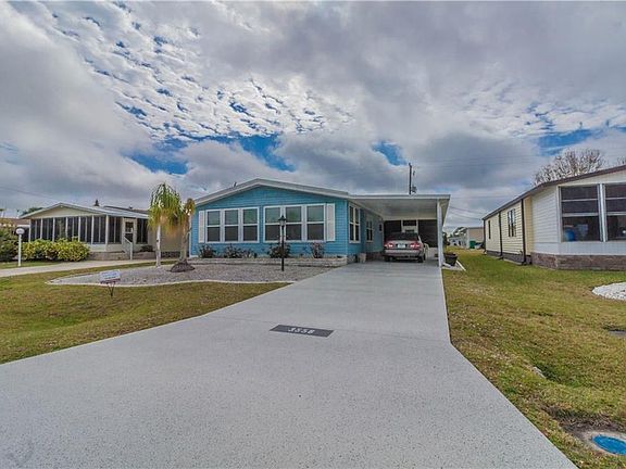 Here is your opportunity to own a 3 bedroom, 2 bath doublewide in Vizcaya Lakes where you own the land! This doublewide has a 2017 roof, a 2 year old A/C, a recently remodeled kitchen with solid wood cabinets, and updated bathrooms. The windows in the Florida room are hurricane impact and this room is a perfect spot to entertain. In the kitchen, there are two pantries, a breakfast area, and plenty of cabinets for all your kitchen essentials. The kitchen leads into the dining room and there is a built in hutch for extra storage. The living room is a perfect spot to unwind and relax. The two guest bedrooms are separate from the master and are next to the guest bathroom that offers a tub/shower combo. In the master bedroom, there is a his and her closet and an on suite master bathroom. The master bathroom offers a single vanity and a walk in shower. This home also has a screened in lanai and is a perfect spot to watch those Florida sunsets. The washer and dryer is in the storage room and this doublewide is located on a great lot next to all the community amenities. Plus you have a front view of the lake. From this location, you are close to the beaches, restaurants, shopping, and the Charlotte Rays stadium. Come check out this doublewide that is located in a pet friendly community and offers low HOA fees of $187 a quarter as it will not disappoint!