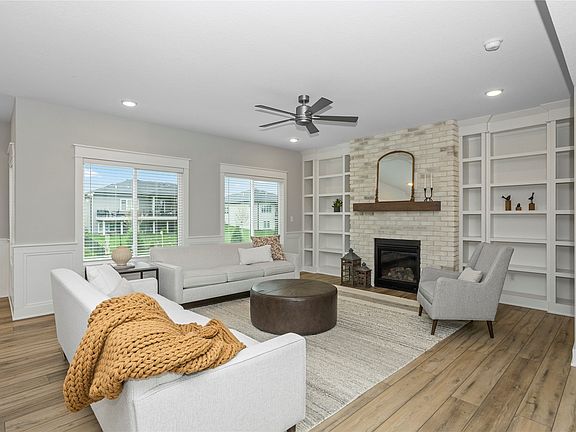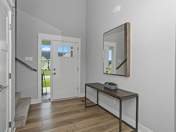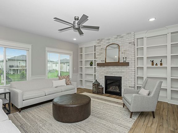This stunning two-story home in the Waukee School District offers over 3,500 finished square feet, featuring 5 bedrooms and 3.5 bathrooms. The main level showcases a spacious eat-in kitchen with quartz countertops, a custom tile backsplash, slate appliances, staggered cabinets with trim, a walk-in pantry with sliding door, a large center island, and LVP flooring. The open-concept living area includes a beautiful stone fireplace with built-in shelving, while a separate office/flex room features coffered ceilings and French doors. Additional main-floor highlights include a mudroom, half bath, 9-foot ceilings, and access to a covered deck from the dining area. Upstairs, a convenient laundry room with a sink, and three secondary bedrooms sharing a full bath with double vanity. The spacious primary suite boasts a tray ceiling with crown molding, a tiled double shower, dual vanities, and a walk-in closet with built-ins. The finished basement offers 9-foot ceilings, a large rec room, an additional bedroom with a walk-in closet, and a full bath with a shower. Thoughtful touches like lighted stairs and Pella casement and slider windows add both elegance and practicality to this well-crafted home with 2x4 construction with an attached 3-car garage. Located in the Waukee School District, near parks and trails. Don't miss this incredible home!