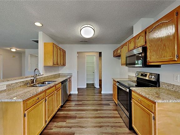Welcome Home! This charming home in the desirable Williams Grove neighborhood is fresh to the market and won't last long! This spacious home has just been fully painted, and has brand new flooring throughout. Inside the front door, the open-concept living area greets you, comprised of a large living area, formal dining room, and eat-in kitchen with beautiful granite countertops and brand new stainless appliances (range, dishwasher, microwave). On one end of the home, there are two generous guest rooms and a shared full bath. Additionally, a large primary suite with private bath and large walk-in closet occupies the other end of the home. Upstairs, an additional guest suite with private bath occupies the area over the garage. A sunroom off the kitchen leads out to the back patio and partially private back yard that has a peaceful pond view. This home features two brand new HVAC units, as well as a brand new water heater. Stop by today, you'll be glad you did!