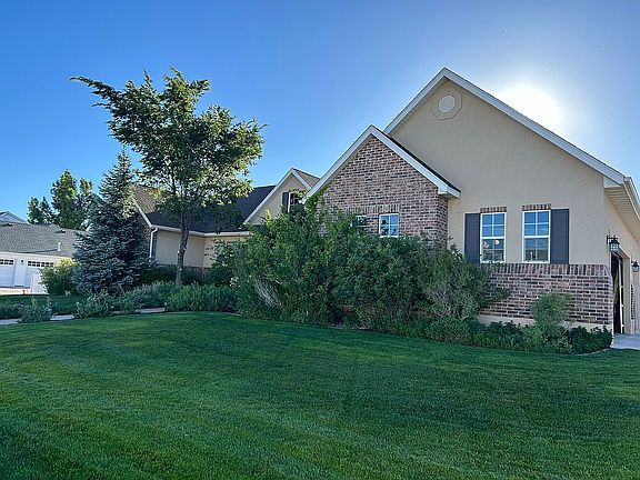 Garret White custom 3900 sq.ft. home on .61 fully fenced acreage Two10 foot gates and one 4 foot gate leading to a well landscaped back yard. Home has two fire places, one is natural gas and the other is wood burning. A master suite on main floor and three bedrooms and two full baths in the basement. Separate dining room. Office off master suite and office of entry. Kitchen Aid appliances. Custom cabinets throughout home. All cabinets have Accuride glides. French drains in the back yard. LDS temple view from kitchen window and from main floor deck. Front yard is fully landscaped. Water rights for irrigation. Partial ownership of Equestrian Park Community Park. Great neighbors!