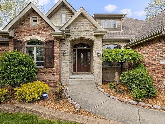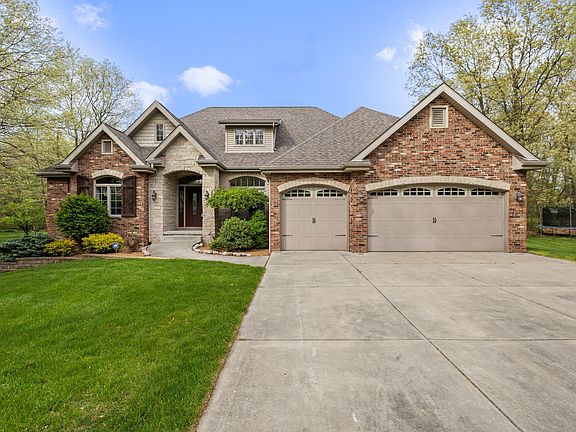 This stunning custom built ranch makes a statement the second you pull in the drive! The main floor boasts hand hewn hardwood & ceramic throughout as well as 10ft ceilings for a spacious feel. A formal dining room and office/4th bedroom are located just off the foyer. This stone fireplace in the living room is visible the moment you walk in and makes a great focal point. The split floor plan offers a the primary bedroom with a private bath and massive walk in closet. The eat in kitchen is home boasts solid surface counters and glass doors that lead to the enormous 433 sqft rear deck! Bedrooms 2 & 3 share a jack n' jill bath and deck access. Need more room? The full daylight basement has a 1/2 bath a HUGE rec room that could easily be divided to suit your needs. A couple unfinished rooms and workshop areas offer great storage. Bring your toys, the 3 car heated attached garage gives ample space and there is a matching shed for the mower & tools! This gorgeous home is nestled on a quiet lot over looking the developers park like cul-de-sac! There is a ton of square footage offered here! Don't miss out on this spectacular home!