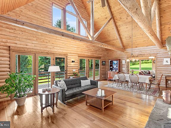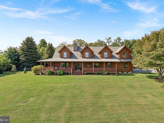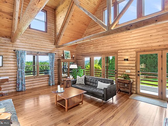 Perched 770’ high on a hilltop at the base of the Blue Ridge Mountains with Views of Hillsboro Gap, this home is stunning! | White Cedar Hand Hewn Logs, Cedar Floors, Tongue & Groove Ceilings, & Suspended Log Beams Contribute to the Upscale and Authentic Log Home Aesthetic | Soaring Two-Story Ceilings in the Foyer, Great Room, and Dining Room | Open Concept Floorplan with Two-Story River Rock Woodburning Fireplace Rising in the Center | Picture Windows & Doors Lead to the Wraparound Porch | Designer Kitchen with Custom Painted Cabinets, Granite Countertops, Stainless Appliances, Great Lighting & Dining Peninsula | Fantastic Sunroom with Terracotta Brick Floor & Views in all Directions | Convenient Mudroom/Laundry Room off Kitchen | Main Level has Bedroom & Updated Full Bath with Roll-In Frameless Glass Shower | Spacious Primary Suite has Cozy Wood Walls & Ceiling and a Private Balcony | Updated Primary Bath has Radiant Heat Floors, Frameless Glass Shower, Dual Sink Vanity with Quartz Countertops, Two Large Linen Closets | Secondary Bedrooms are Generously Sized | Large Hall Bathroom has Ceramic Tile Floor and Extended Vanity | 42’ x 37’ Unfinished Walk-Up Basement has 9’ Ceilings, a Work Sink, 3-Piece Plumbing Rough-In, and Endless Potential | Oversized 700sf Garage | Saved the Best for Last – the AMAZING Wraparound Porch! Welcome Guests, Enjoy the Breeze, Take in the Views! Over 600sf of Covered Outdoor Space! | Sweeping Porch ends at Uncovered Deck Space, Perfect for Grilling and Dining | 3+ Acres of Lush Lawn and Landscaping – Hardwood, Coniferous, and Fruit Trees and Perennial Garden | MANY RECENT UPGRADES Including Entire Home Washed Caulked, and Stained (2024), New Front Porch Posts & Rails (2024), Low-Voltage Exterior/Landscape Lighting (2024), 22 Trees Recently Planted Including a Mini Orchard with Apple & Peach Trees (2024), New Basement Exterior Door (2024), New Humidifier Installed (2024), Main Floor Bedroom Painted (2024), New GE Dryer (2024), New GE Washer (2023), Chimney Seal & New Cap Added (2023), Kitchen Cabinets, Primary Bedroom, Entrance Hall, Kitchen, and Main Floor Walls Painted (2023), Frost-Free Well Hydrant Installed (2022), Backyard Fence Installed (2022), Kitchen Appliances Replaced (2021), Roof Replaced with Enhanced Warranty (2020), Furnace & Air Conditioner Replaced (2020)