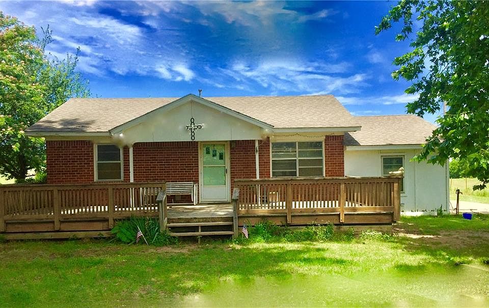Enjoy your horses or other livestock with this quiet country ranch. Peaceful setting on good county road just seconds from highway. Efficient brick home has new flooring throughout and country style eat in kitchen with great space! Enjoy your mature fruit trees and pecan while trees sipping coffee on the large front deck. Relax watching your horses in the fenced pasture, and then keep them safe in the large sturdy livestock barn and corrals. Keep your vehicles covered in the extra large detached garage in front. The new appliances stay with home!! New septic tank and lateral lines installed in the last couple of years. Several upgrades to the home including new flooring and kitchen butcher block counters. Round pen, steel panels, and troughs are available for purchase with contract, negotiable. Everything is set up for your new ranch, all it needs is you!