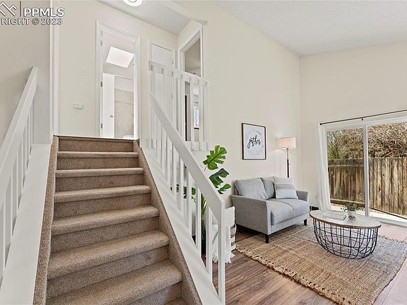 This cozy tri-level home is centrally located in the heart of Briargate, the highly sought-after School District 20, and within walking distance to shopping and trails! The house is move-in ready, clean, and has been well-cared for. Enjoy the wood-burning fireplace, main level walk-out patio, and a deck off the master bedroom with open space behind and gorgeous mountain views. The kitchen features wood laminate floors and stainless steel appliances. This one won't last long! The lower-level bedroom has been converted into an oversized laundry/multi-purpose room and the lower-level bath has been expanded to include a spacious shower. Central A/C was added in 2022, stairs have brand new carpet, new light fixtures, new paint, and xeriscaped backyard for low maintenance!