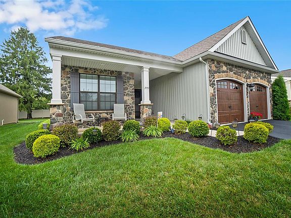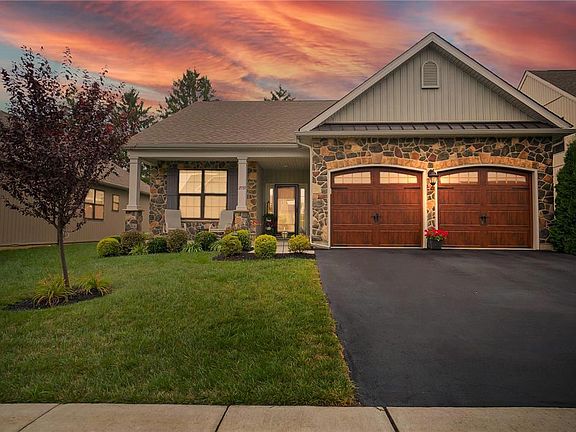Radiating charm and sophistication, this beautiful 2 bed, 2 bath single home in the amenity rich and very active 55+ community of The Fields at Indian Creek is sure to impress! Convenient one floor living & open floor plan! Approaching the covered front porch and through the front door, you'll be invited into the bright foyer. Leading from the foyer is the dining area to gather around the table! Opening up from the dining area is the gourmet kitchen to showcase your cooking skills, featuring a large granite center island w/ storage & seating, apron front farm sink, SS appliances, pantry, and modern touches! Unwind or spend time with guests in the bright & airy living room which boasts vaulted ceilings, a gas fireplace, and sliding door to the patio. Retreat to the Master Bed, offering a walk-in closet for your array of fashion, and full en-suite w/ dual vanity, walk-in tiled shower & linen closet. An additional bedroom, mud room w/ access to the garage, laundry room and full bath complete the main living area. With an oversized attached 2 car garage, large patio, community club house, in ground pool, pickle ball, tennis court and various community clubs- this home has everything you need! Conveniently located within minutes of Rt 78, award winning healthcare, eateries, shopping & so much more!
