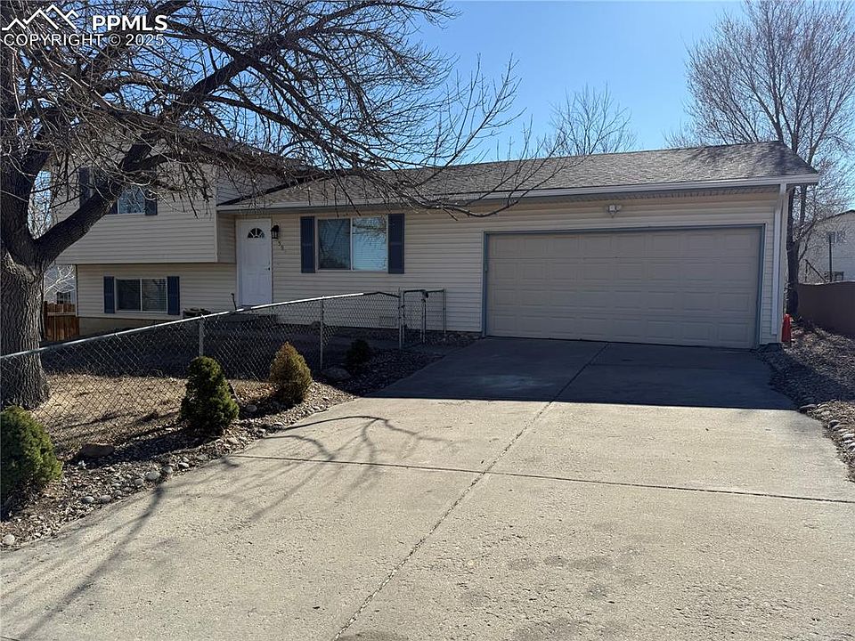 This beautifully remodeled 3-bedroom, 2-bathroom tri-level home with a 2-car attached garage is move-in ready and conveniently located near Fort Carson and downtown Colorado Springs. Recent upgrades include new windows, blinds, doors, and fresh paint throughout, including the garage. The kitchen boasts new cabinets, quartz countertops, and stainless steel appliances. New LVP flooring has been installed in the living room and kitchen, while new laminate flooring, enhances the upstairs bedrooms. Bathrooms have been updated with new vanities, countertops, and lighting. Additional improvements include new interior and exterior lighting, light switches, outlets, and a new water heater. Garage is twenty three feet deep and the driveway length is thirty three feet opening the driveway for a variety of vehicles. Professionally serviced, the home has undergone an electrical panel inspection, a furnace tune-up, and a main sewer line cleanup. It also features a bonus storage space, sunroom, a spacious garage, and last but not least. There is no HOA. This place is ready to become yours, schedule your showing today.
