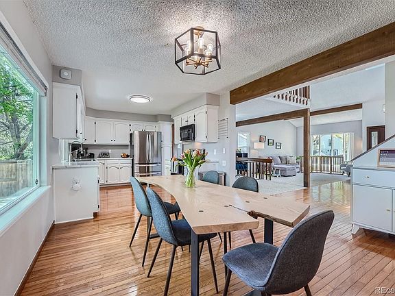 OPEN HOUSE SUNDAY 6/9 from 1-3pm. Beautiful mountain views, backs to a greenbelt w/ trail. This open, airy Northpark 2-story home is ready to move in & start enjoying all this coveted community has to offer. The main level welcomes you with soaring 2-story high ceilings & an open living area w/ traditional dining or office area. Freshly redone, the kitchen is crisp & bright w/ beautiful Quartz counters, clean white cabinetry, stainless steel appliances & hardwood flooring flows into a large eat- in area & second living room w/ gas fireplace. This sun-filled space overlooks the fully-fenced, lush backyard. Upstairs, the primary bedroom is a true retreat - offering a massive footprint, vaulted ceilings, plentiful natural light & two walk-in closets. The luxury en-suite bathroom was recently remodeled & straight out of a magazine w/ heated floor, skylight, tall ceilings, double vanity, oversized shower w/ multiple shower heads, glass enclosure, hexagon penny tile floor, vertical subway tile walls & stylish light fixtures. The upstairs level is completed w/ the additional bedrooms and full bathroom. Brand new windows in the bedrooms, kitchen & basement make the home quiet & peaceful inside. Attractive, newer exterior paint means no upcoming exterior maintenance! Sprinklers in the front & rear w/ a smart controller optimizes water use & keeps the lush yard ‘party ready’. Although the home has central air-conditioning, it’s also equipped w/ an attic fan & ceiling fans to increase energy efficiency & lessen energy bills. The new electrical panel & radon mitigation system provide peace of mind & save you those large expenses. The unfinished basement has stub-in plumbing for a bathroom & all brand new windows, including an egress window, so could easily be finished. Northpark is a small, friendly community w/ a pool, pickleball/tennis courts & playground. This home is central to shopping hubs & many parks, including the newly renovated Squires Park coming this summer.