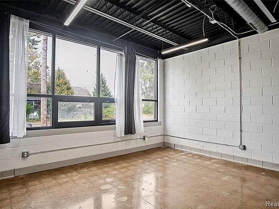 Boutique loft on a quiet block in Chadsey Condon just west of Core City. This modern space offers open layout living with polished concrete floors and a wall of north-facing windows complete with full drapes for privacy. The kitchen features quartz countertops, a tiled backsplash, dark cabinetry, and stainless steel appliances. The primary bathroom includes a tiled shower and double vanity, while a convenient half bath off the living area is ideal for guests. In-unit stacked washer and dryer included. A perfect live/work space in a peaceful pocket of western Detroit that is closer to downtown than you would expect.