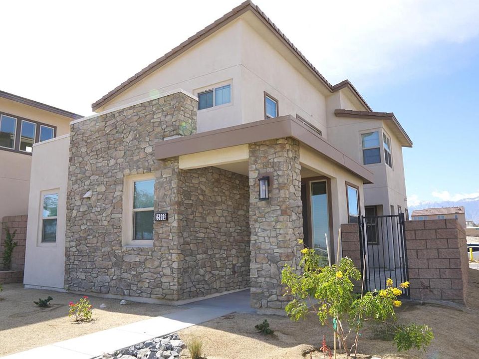 WOW! Corner lot new construction 3/3 SOLAR home in Palm Desert's Verve community with incredible mountain and valley views. This brand new house features a great room floor plan with upgraded tile flooring, recessed lighting, custom roller shades, and ceiling fans. Island kitchen with tons of European style soft close cabinets, custom tile work, and stainless steel appliances. Large loft area, and the second floor laundry room includes storage cabinets and a new washer and dryer. Main bedroom suite with large shower, dual basin vanity, and a walk-in closet. Covered patio entrance, and a two car garage with a 50A electric vehicle charging outlet. Easy to maintain low water usage desert landscaping on the front and side, plus new landscaping and accent lighting. This is the perfect Coachella Valley location near schools, shopping, and entertainment. Offered at just $3295 per month on an annual lease with landscaping maintenance included. Minimum qualifications: All adults must apply, minimum 650 FICO score. Current and verifiable income of three times the rent or more. No bankruptcies or evictions. Good rental history. Annual lease, owner pays for landscaping maintenance. Solar home.