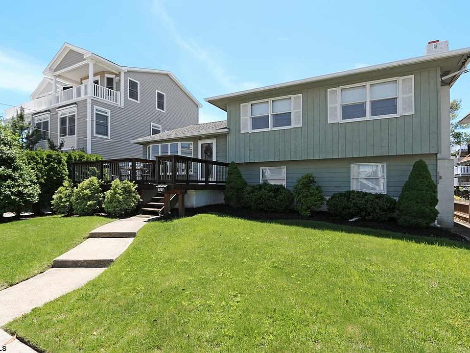 Only 1 house from Ocean Ave! This 4 bed/2 bath home has an in-law suite or 'man/woman cave' on the lower level which has a bedroom, full bathroom and large family-room with a floor-to-ceiling brick fireplace, bar, sink and full-sized refrigerator in addition to it's own private entrance. The kitchen was redone, has new flooring and a beautifully renovated full bath on the 2nd floor. The huge, detached 2 car garage adds additional parking and ample storage while leaving room for a pool if desired. The ocean's waves can be heard clearly from both the front and rear yards! This is a great location with a short walk to beach, shops and eateries of our secondary town. The beach @ 35th St. is large, not crowded and guarded with the volleyball courts nearby.