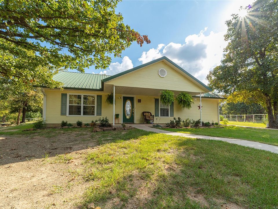 Metal constructed 3 bed 2 bath home with large kitchen/dining area that also includes a tiny home offering 2 bed 1 bath and large living area for family over flow or large family. This home is metal construction which makes it where walls can be moved because they are not load bearing. This sits on 8 acres m/l with a barn and a storage shed and is just minutes from McAlester. Covered patio in back and above ground pool for those family get together or holiday BBQ!