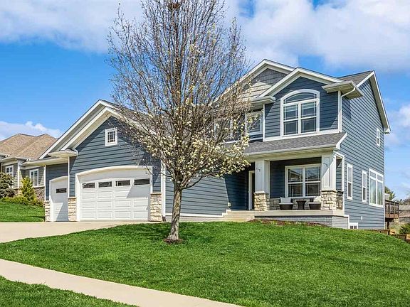 Welcome to this spacious two-story home located on the east side of Iowa City! Foyer entrance & beautiful cherry hardwood floors welcome you & lead to the formal dining room and sunroom w/ a sliding door out to the freshly stained deck w/ stairs down to the yard. The kitchen is a entertainer's dream, w/ an oversized island, granite countertops, stainless steel appliances, double oven, gas range w/ hood, pantry cabinets, & plenty of storage space. The living room is bathed in natural light & features a gas fireplace. On the 2nd floor is the primary suite, complete w/ a walk-in closet, ensuite bath w/ 6-foot soaking tub, tile shower, toilet closet, & dual vanities & extra counter space. The 2nd bedroom offers LVP floors, walk-in closet, and its own ensuite bath! 3rd & 4th bedroom upstairs along w/ a full hall bath & laundry room w/ sink & cabinets for storage. The walkout lower level boasts 10-ft ceilings & huge family room/rec room. Two additional bedrooms down along w/ a full bathroom. Large lot that backs up to City of IC green space. Attached 3-car garage and great storage throughout home!