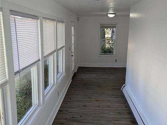 The enclosed, three-season front porch offers a peaceful spot to enjoy your morning coffee or unwind after a long day. Out back, you will find a generous fenced yard with new steps leading to a patio and fire pit, creating an ideal space for summer nights under the stars. A blacktop driveway, newer dishwasher, and recently serviced natural gas boiler add to the home’s practicality and peace of mind.