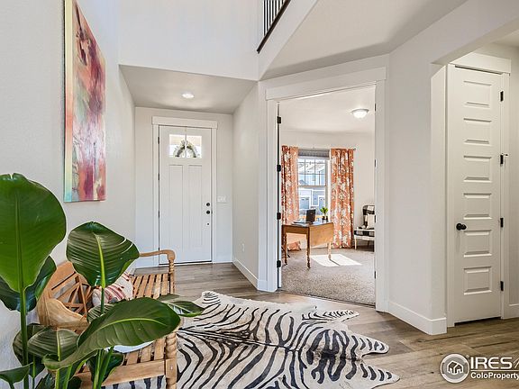 Beautiful newer home in the prestigious Heritage Ridge community on quiet cul-de-sac with stunning mountains views! Open floorplan with tall ceilings & abundance of natural light. Immaculate condition & loaded with custom upgrades throughout will impress! Chefs dream gourmet kitchen with custom cabinets, large island, granite ctops, gas range with vent hood & double oven. Plenty of room to host with multiple living spaces & room to expand in the large unfinished basement. Retreat to the luxurious primary suite with elegant bathroom boasting his/her vanities & closets. Custom touches throughout including luxury vinyl floors, fireplace, 2nd study/pantry & designer window treatments. Escape to the backyard oasis with big covered patio, professional water wise landscaping, lush gardens & fire pit that backs to open space. Zoned HVAC & 2x6 construction make very energy efficient. Enjoy the community pool, 2 playgrounds, parks& trails - outdoor living at its best! Walk to top rated schools & downtown Berthoud shops/restaurants. This home has it all & move-in ready.