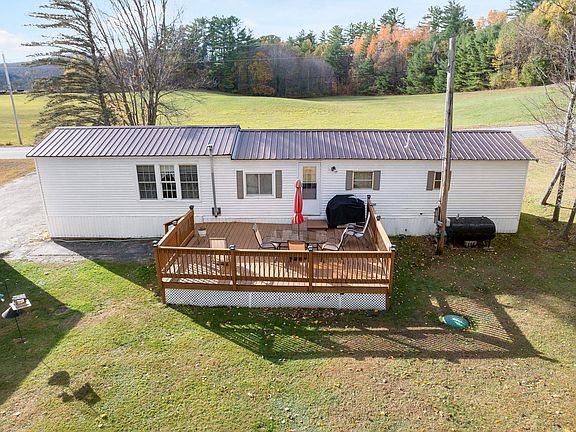Sitting on a peaceful 0.86-acre lot overlooking open fields and the breathtaking Vermont mountain range, this well-maintained single-wide manufactured home offers the perfect blend of rural serenity and modern updates. Inside has seen updates over the past 6 year including 3/4 subflooring and fresh floor coverings, complemented by newer double-pane vinyl windows that fill the space with natural light. Step out onto the spacious back deck—ideal for relaxing, entertaining, or simply soaking in the panoramic views. Outdoor enthusiasts will love the nearby hiking trails and easy access to snowmobile and ATV routes, making this a year-round haven for adventure. Despite its quiet setting, you're just minutes from town amenities, giving you the best of both worlds. Whether you're seeking a full-time residence or a weekend escape, this move-in-ready gem is a rare find.